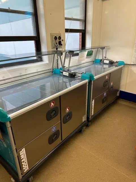 Hôpital universitaire de Rostock (ALLEMAGNE) – livraison et installation de 70 bornes Doubleflow et 210 navettes Ergoserv