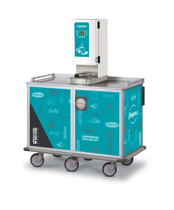 Le SERVIZIO Café est l’alliance réussie entre un chariot petit déjeuner et un préparateur automatique de boissons.
